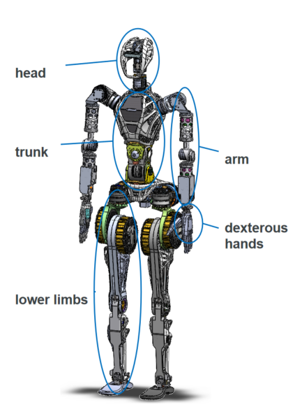 GR-1主要有五大组成部分:头部、躯干、手臂、灵巧手以及下肢。