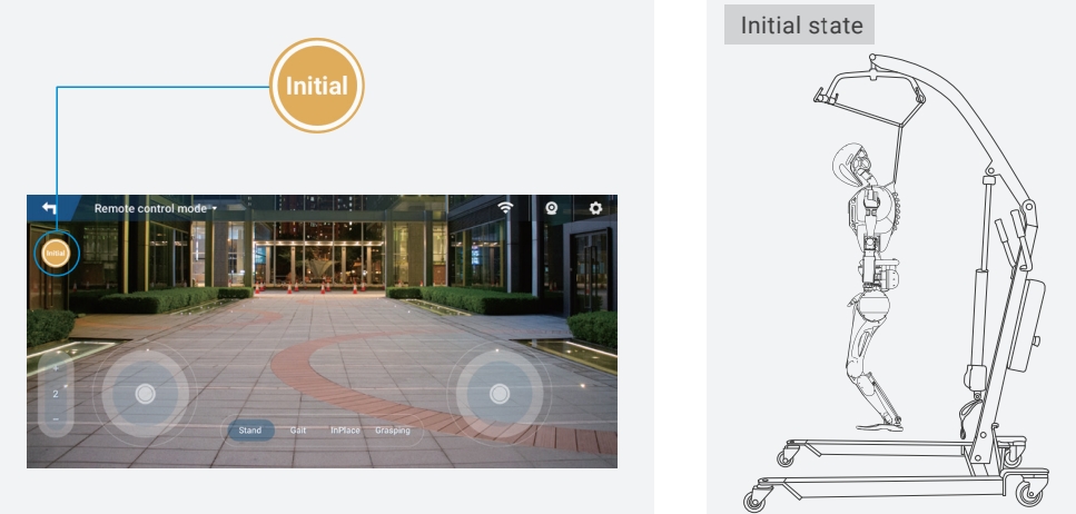 Note: When clicking the “Initial” button, the robot must be fixed on the protection stand.