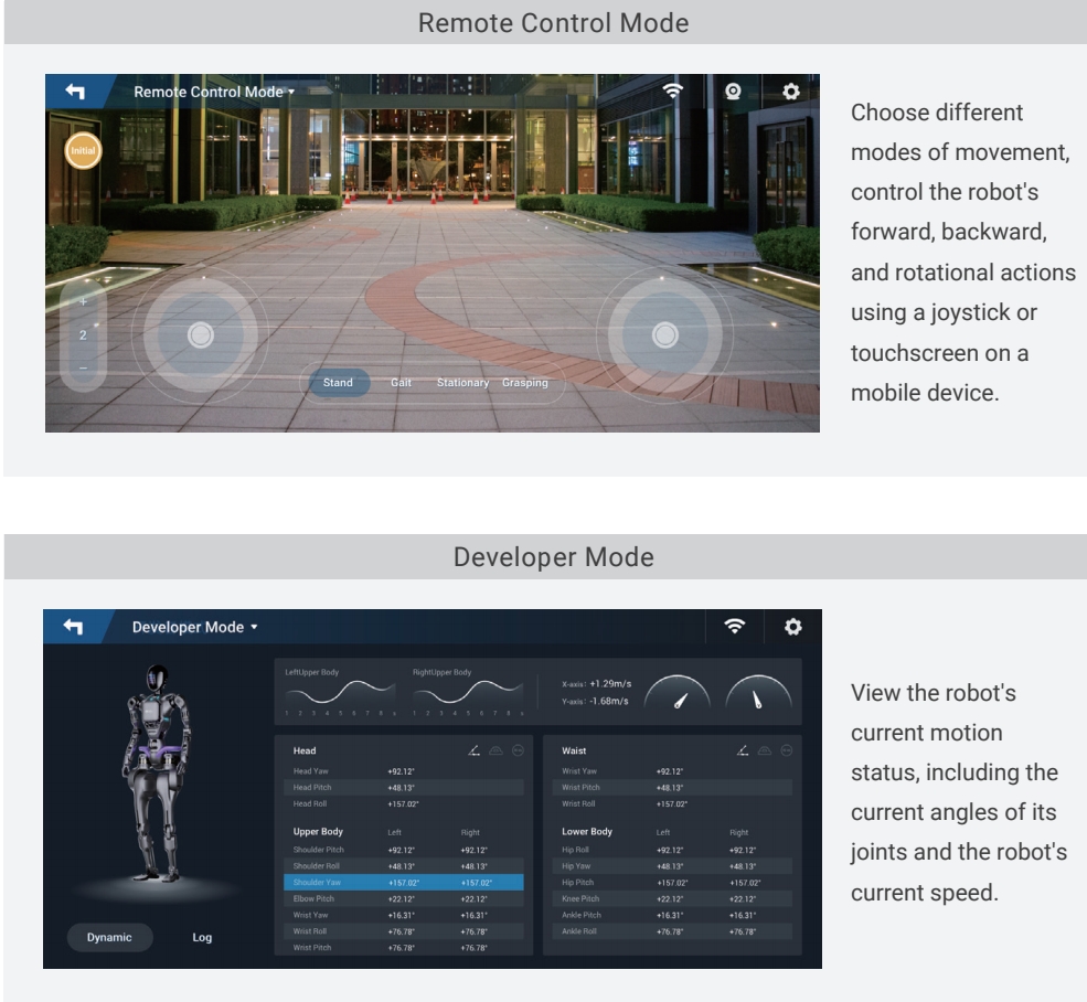 - Operation modes include Remote Control Mode and Developer Mode.