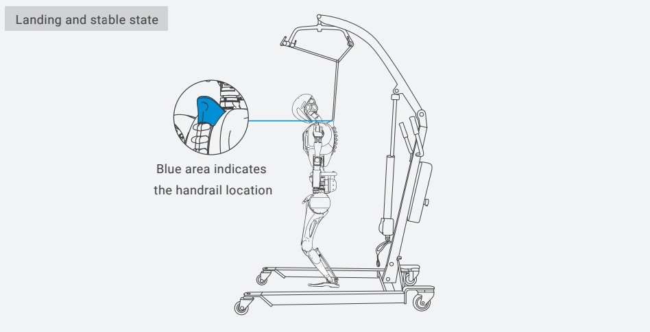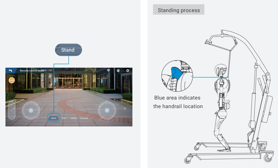 - Slowly lower the protection stand until the robot’s feet are fully in contact with the ground. Then, gently shake the robot to confirm it is stable.