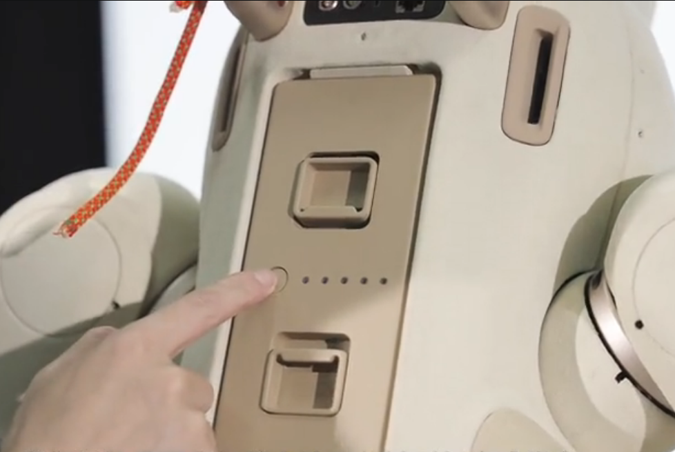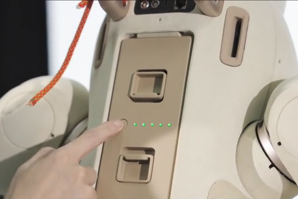 Insert the battery into the battery port on the back of the robot. When properly inserted, you will hear a "click" sound.