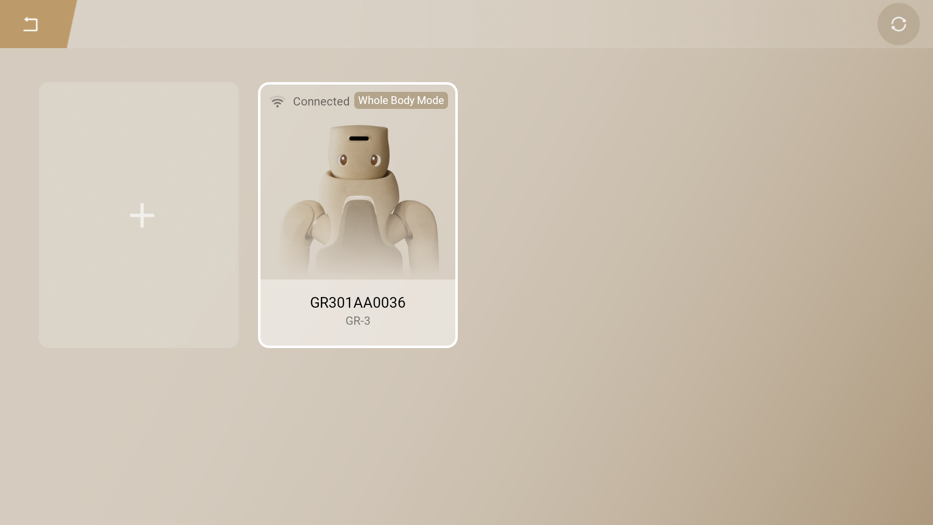 - When the "GR Control" app is opened, the following interface will be displayed. Tap the "+ card" to manually add a robot card.